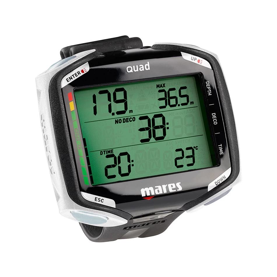 Ordinateur de plongée Mares Quad multi gaz, affichage extrêmement clair, une navigation naturelle et intuitive.