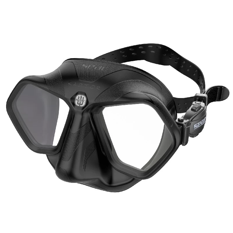 Le masque Seac Raptor est doté d’un faible volume avec une jupe en silicone surimprimée sur l’armature. Cela lui procure une excellente vision périphérique et un grand confort l’ensemble muni d’un design discret.