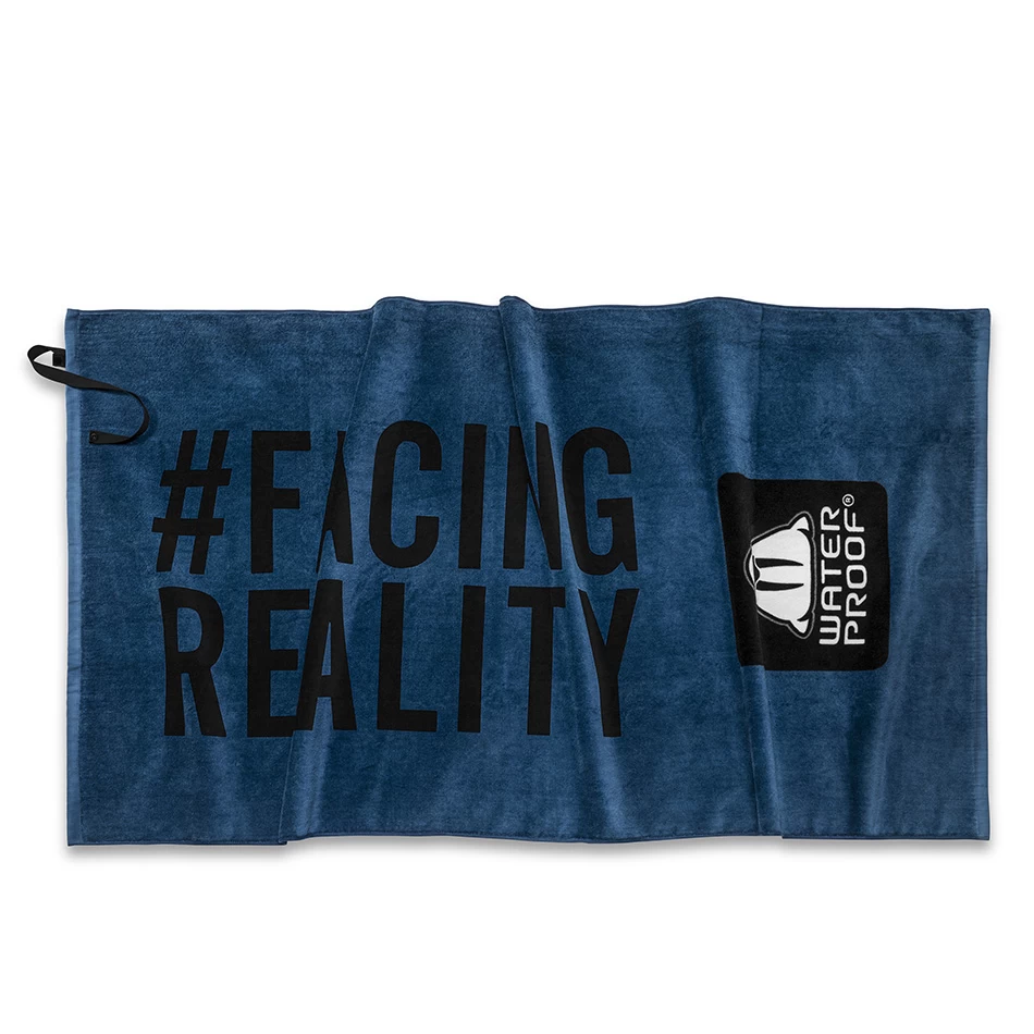 Serviette de bain Waterproof bleu / noir en coton écologique, 100% velours, 500 g/m2.